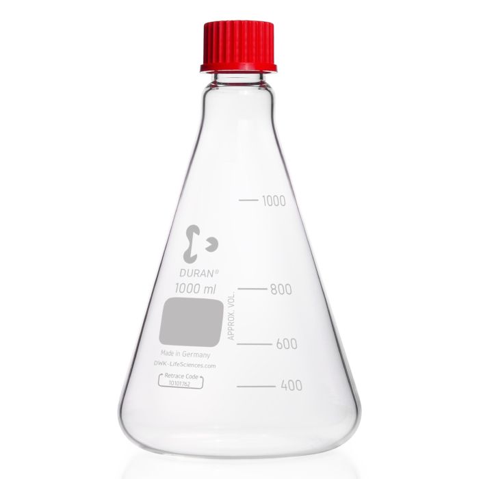 Thanks to their exceptional properties, such as excellent chemical resistance, nearly inert behaviour and high usage temperature, the original DURANĀ® Erlenmeyer flasks are ideal for use in laboratories. Moreover, the uniform wall thickness, minimal thermal expansion and the resultant high thermal shock resistance are outstanding characteristics. Therefore, DURANĀ® Erlenmeyer flasks are particularly suited to use with very high temperatures and fast temperature changes.