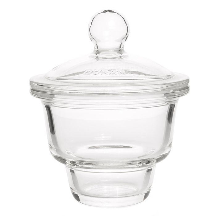 The DURANĀ® desiccator is a vacuum-suitable laboratory vessel with a ground lid, which is used for storing moisture-sensitive substances and for drying moist products. Separated by a sieve plate (made of metal or porcelain), a drying agent is introduced into the lower part of the desiccator base, which binds the moisture of the substance to be dried, placed on the sieve plate. To accelerate the drying process, a vacuum can be connected if necessary, as the liquid evaporates faster due to a lower pressure in the desiccator. The vacuum is applied via a shut-off valve connection. To facilitate loosening of the lid, the surface grinding of the desiccator must be well greased, since after evacuation the lid is pressed onto the lower part. All DURANĀ® desiccators are vacuum-resistant, i.e. they can be used up to the technically maximum possible vacuum.