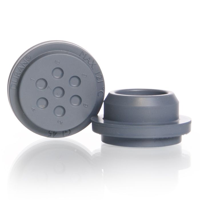 DURANĀ® bromobutyl rubber closures provide a gas tight seal for GL 25 or GL 45 glass laboratory bottles. As a material Bromobutyl rubber is essentially impermeable to most gases, and the stopper provides a controlled environment inside the glass bottle for oxygen sensitive materials. Useful for maintaining anaerobic culture conditions. Bromobutyl rubber allows for multiple punctures providing easy access to the contents with a syringe.