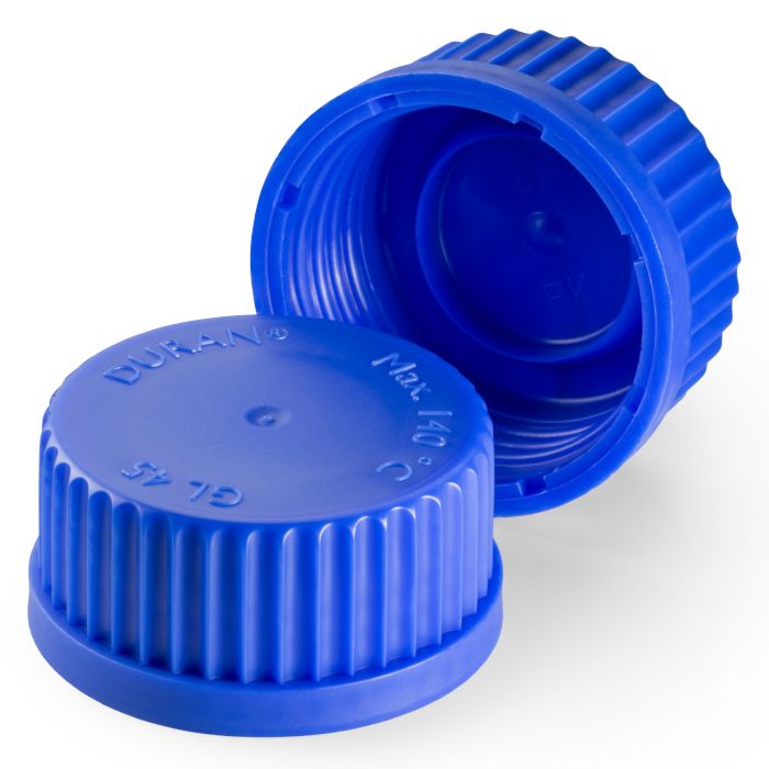 The classic laboratory bottle GL threaded screw cap features the tried and tested cap plug sealing system ensuring a liquid tight seal. Available in four colours; blue, green, yellow and grey with matching pouring rings. Distinguishing media types is simplified and interchanging of screw caps and the risk of cross contamination is greatly reduced.