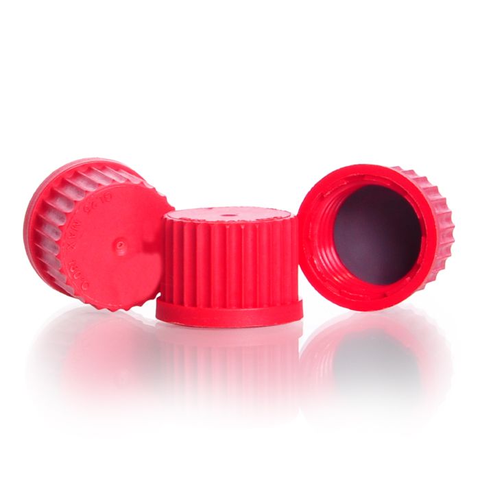 The red polybutylene terephthalate (PBT) GL cap and ETFE pouring rings offer greater thermal and chemical resistance than the equivalent polypropylene components. Screw cap seal has a PTFE faced cap liner for efficient sealing. ETFE pouring ring ensures drip free pouring.
