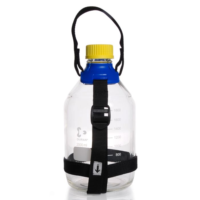 The Bottle Carrying System range fits standard laboratory bottles that have a GL 45 neck finish, and are available for four bottle sizes: 2, 5, 10 or 20 litres. The carriers are ergonomically designed and offer health and safety benefits to the user. They allow the easy and safe transport of bottles around the laboratory or production facility. All materials are fully autoclavable. The carrier for the 10L bottle has a pair of carrying handles for lifting by two people. The collar that fits to the neck of the bottle is only removable by cutting, so the attachment is 100 % secure in use.