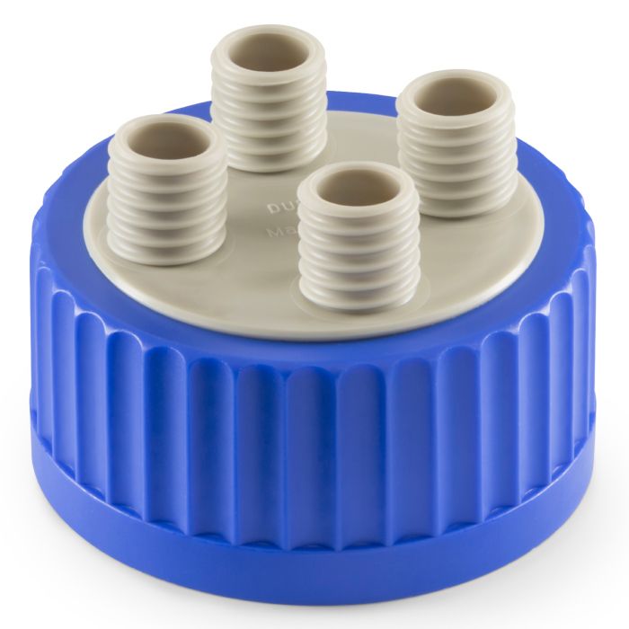 Flexible modular liquid or gas transfer 80® connection cap system. Five different tubing diameters (3.2 mm; 6.0 mm; 8.0 mm; 10.0 mm and 12.0 mm) can be connected. Sterile pressure equalisation is possible by using the syringe membrane filter. Unused ports can be closed with a closed top GL 18 PBT cap.