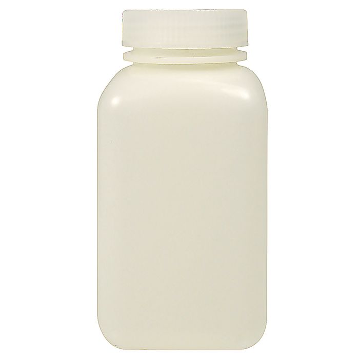 Multi-use bottle, wide mouth design for easy feeding of lumpy or powdery samples.