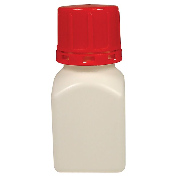 - White Bottle, Red Cap - Supplied with PP Tamper Evident Cap - Neck ID: 38mm