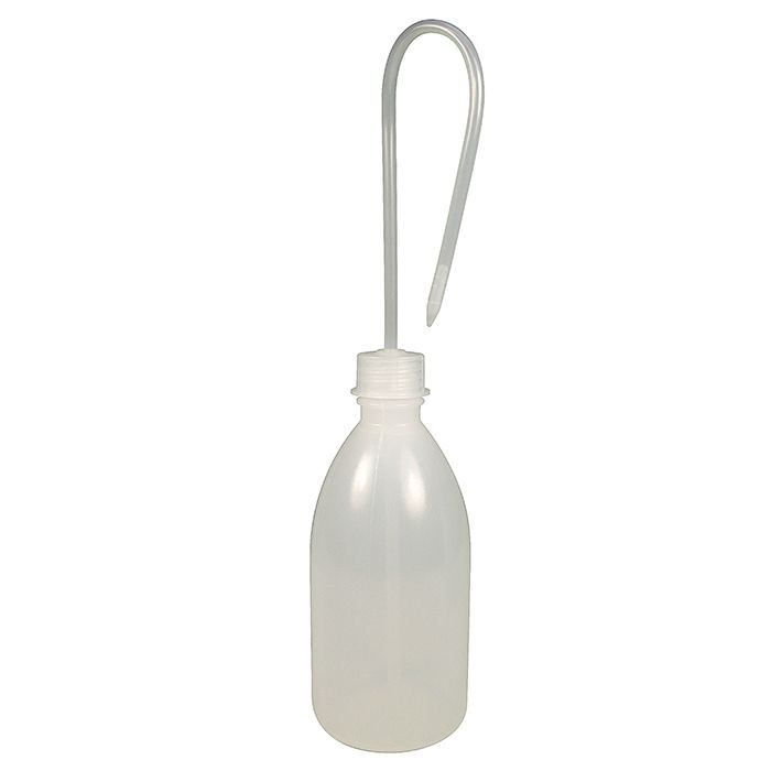Lightweight wash bottle is perfect for storing cleaning solutions, water or other reagents. With long dispensing tube.