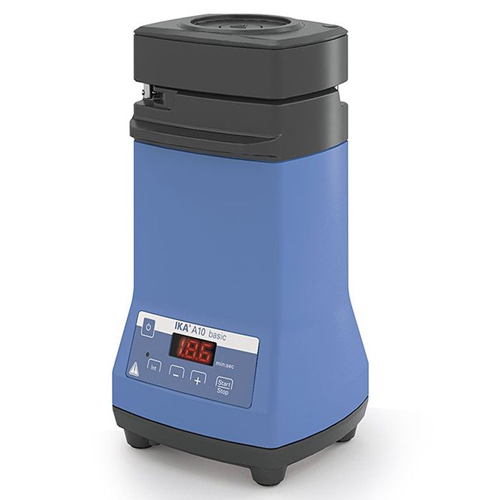 The redesigned batch mill grinds hard, brittle, soft and fibrous materials for volumes up to 50 mL. Because samples may be embrittled directly in the grinding chamber; tough, oily and aqueous samples can also be grinded. The development of the mill placed particular emphasis on safety. The mill will only start when the lid is closed and can only be opened at standstill. A quick stop feature further increases the safety of the user. Test results of the new A 10 basic are comparable with the ones of the previous model A 10, due to the same grinding chamber, cutter geometrics and speed.