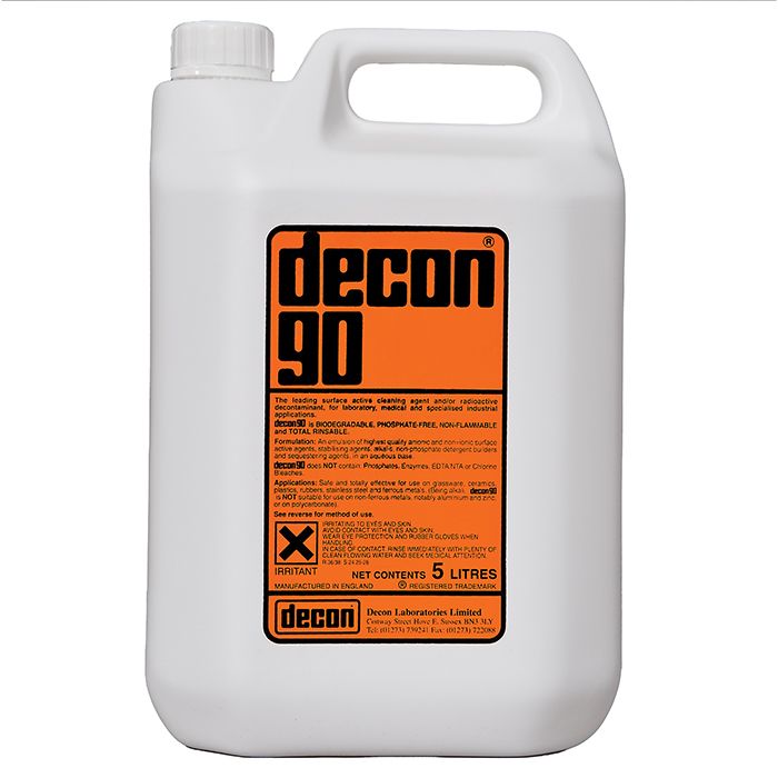 - Prepare a 2% to 5% solution of Decon 90 with water (for critical applications, use demineralised water throughout).
