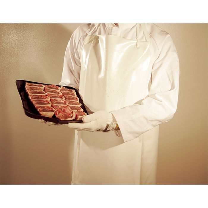 White heavy duty PVC protective apron, for protection from chemicals, punctures, abrasion, oils and more.