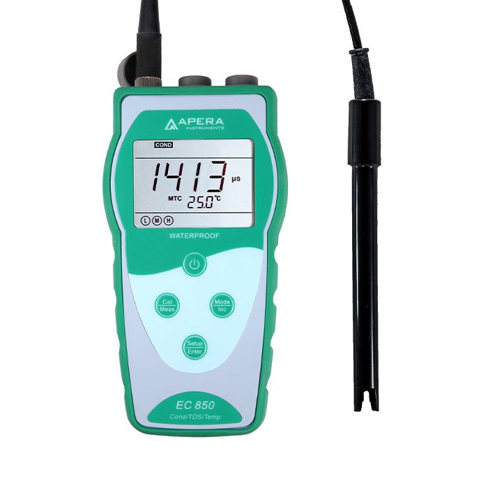 The EC850 Portable Conductivity Meter Kit is designed for professional conductivity measurement in the field with a variety of practical functions and features in a rugged structure.One-tap to switch among conductivity, TDS.