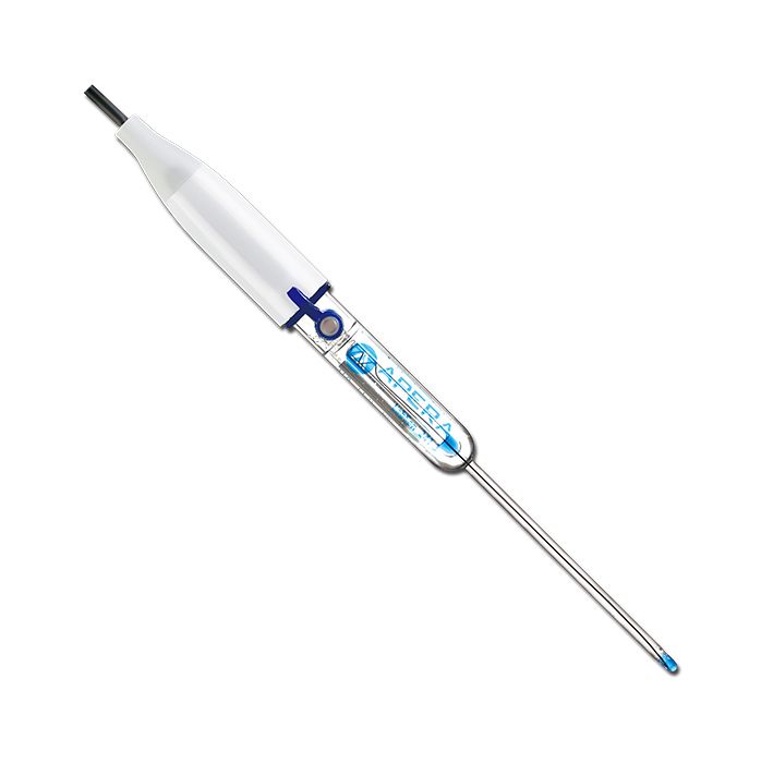The electrode uses a BNC connector, compatible with any pH meters that use BNC connectors. No temperature sensor is built-in. Users need to have a separate temperature probe (ex: Apera Instruments MP500) to enable ATC or manually input temperature to achieve temperature compensation.
