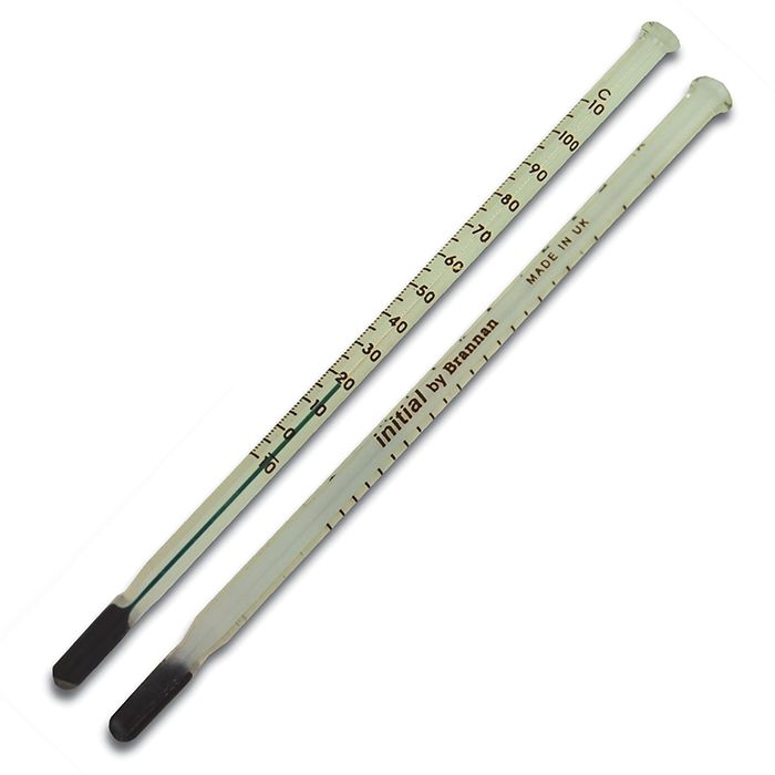 Thermometer G/S -10/110c x 1c 150mm - Triangle shaped end to prevent rolling - Green Spirit - White Back