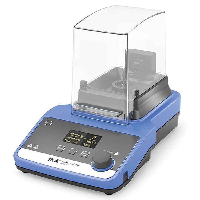 The world’s first patented Tube Mill 100 control is a batch mill with disposable grinding chambers. Eliminates possibility of cross-contamination and the effort of cleaning. The Tube Mill 100 control accommodates larger grinding chambers with a maximum volume of 100 ml (MT 100) . The grinding chamber and cover are made of a transparent material so grinding tests can be observed at any time. The mill can be used for hard (Mohs hardness up to 5), dry and brittle materials. It is especially suitable for grinding seeds, such as corn and wheat. The mill will only start when the hood is closed, making it safe to use.