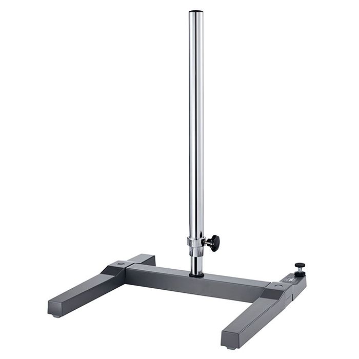 Additionally equipped with a pneumatic spring stand rod, which enables heavy instruments/ attachments to be raised and lowered smoothly without difficulty, e.g. with rheological measurements using overhead stirrers. The stand has an adjustment screw which can be used to compensate for an uneven laboratory table surface.