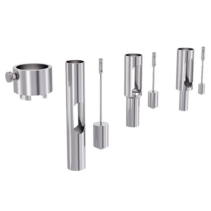 The open DIN spindle set (O-DINS-1) measures viscosities according to DIN 53019 and can be used with customer-specific vessels. The set includes a single-wall-open-jacket to quickly dive into the sample liquid as well as a coaxial cylinder system for the analysis of the sample at a specific shear rate and shear stress is included. The maximum measurable viscosity is 50 000 mPas.