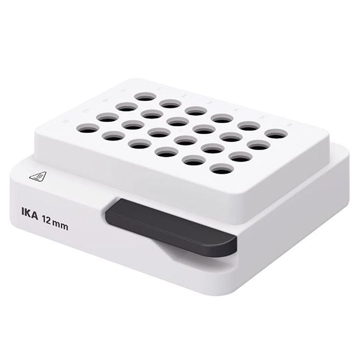 The Matrix 12 mm attachment is suitable for 24 x 12 mm reaction vials (diameter up to 12 mm, height 35 - 76 mm). The ideal attachment design ensures an optimal temperature transfer and thus guarantees valid results. The thermoshakers Matrix Orbital Delta plus and Matrix Delta plus automatically recognize, which attachment is connected to the device via an interface in the locking mechanism. The attachment can be changed quickly and easily with an ergonomic lever. As part of IKA's Integrated Safety Concept, the insulating plastic coating of the attachment ensures user safety, as high temperatures are not transferred to the frame.
