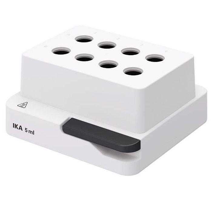 The Matrix 5mL attachment is suitable for 8 x 5mL reaction vials. The ideal attachment design ensures an optimal temperature transfer and thus guarantees valid results. The thermoshakers Matrix Orbital Delta plus and Matrix Delta plus automatically recognize, which attachment is connected to the device via an interface in the locking mechanism. The attachment can be changed quickly and easily with an ergonomic lever. As part of IKA's Integrated Safety Concept, the insulating plastic coating of the attachment ensures user safety, as high temperatures are not transferred to the frame.