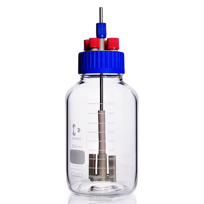 Using an impeller suspended in the media provides a notably improved mixing compared to magnetic stir bars. The variable stirrer shaft can be used in 500, 1000, or 2000 mL DURAN® GLS 80® laboratory bottles. A separate, shorter shaft fits the 250 ml GLS 80® bottles. All the components are autoclavable and therefore suitable for biological applications such as in a low-cost bioreactor.