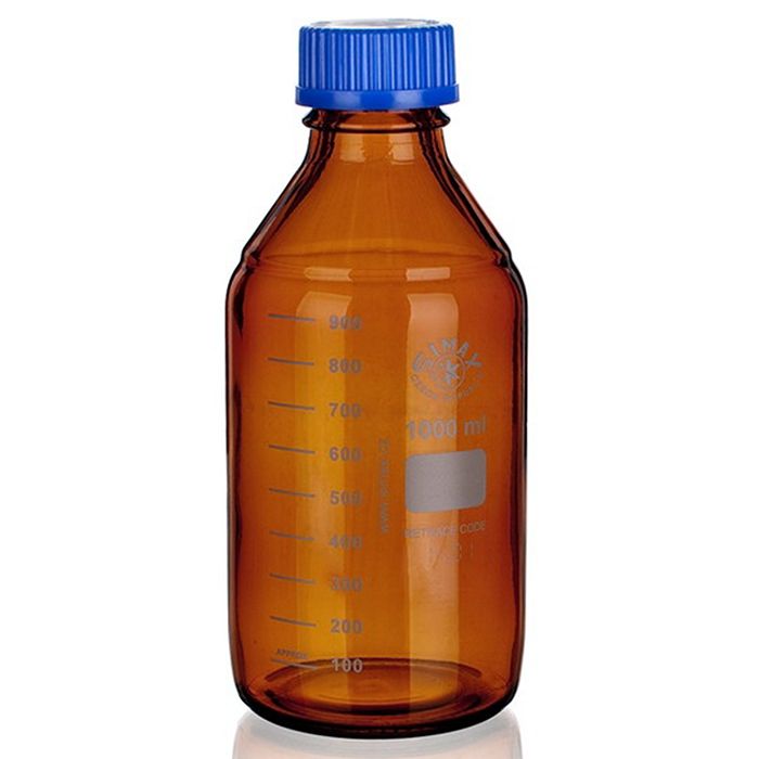 Amber bottles for reagents are made of borosilicate glass 3.3. Plastic blue screw caps are intended for the operational temperature up to 140c.