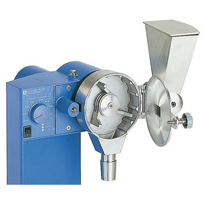 For crushing brittle, hard materials such as minerals, building materials up to Mohs hardness 6. Before being discharged, the ground material passes through a sieve. This sieve is interchangeable and available in different hole sizes (not incl. with delivery). The ground material can then be collected using an NS 29 standard ground vessel.
