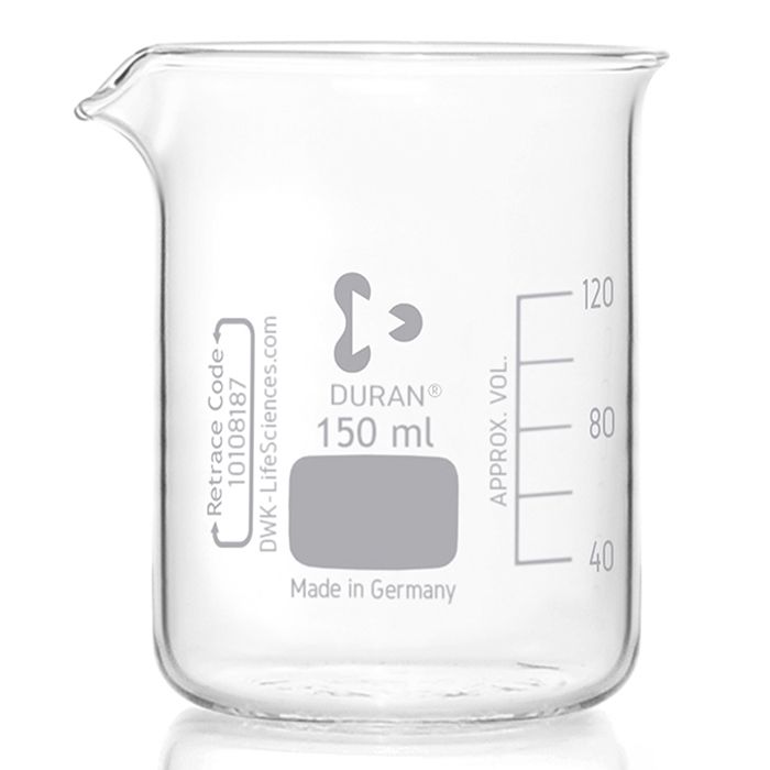Beakers are cylindrical vessels with a straight side wall. Thanks to this shape, beakers are universally usable laboratory vessels and usually serve as collective vessels and for preparing, mixing and heating solutions. Easy filling is possible via the large vessel opening.