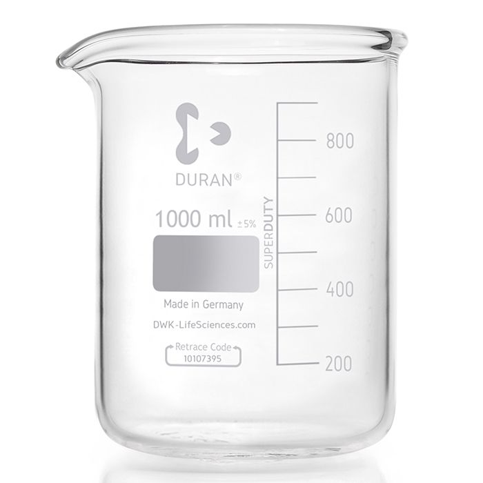Beakers are cylindrical vessels with a straight side wall. Thanks to this shape, beakers are universally usable laboratory vessels and usually serve as collective vessels and for preparing, mixing and heating solutions. Easy filling is possible via the large vessel opening.