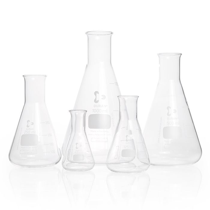 Thanks to their exceptional properties, such as excellent chemical resistance, nearly inert behaviour and high usage temperature, the original DURANĀ® Erlenmeyer flasks are ideal for use in laboratories. Moreover, the uniform wall thickness, minimal thermal expansion and the resultant high thermal shock resistance are outstanding characteristics. Therefore, DURANĀ® Erlenmeyer flasks are particularly suited to use with very high temperatures and fast temperature changes.