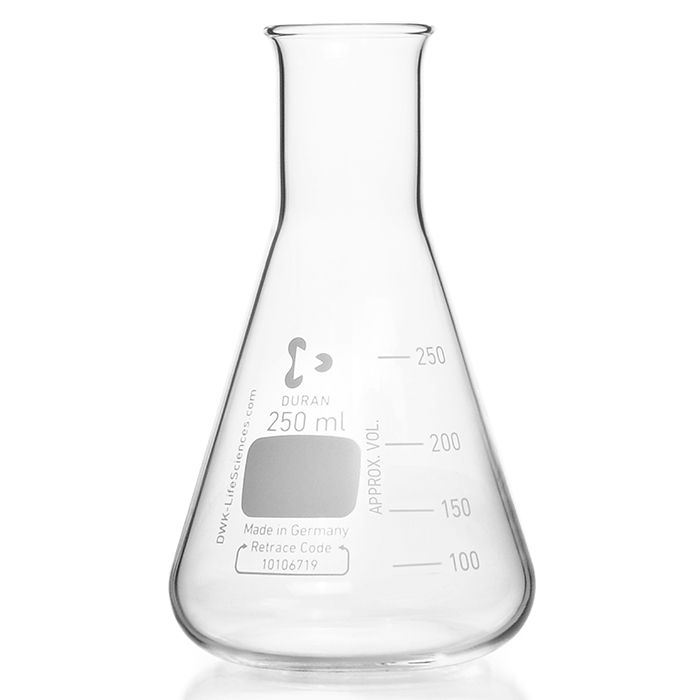 Thanks to their exceptional properties, such as excellent chemical resistance, nearly inert behaviour and high usage temperature, the original DURANĀ® Erlenmeyer flasks are ideal for use in laboratories. Moreover, the uniform wall thickness, minimal thermal expansion and the resultant high thermal shock resistance are outstanding characteristics. Therefore, DURANĀ® Erlenmeyer flasks are particularly suited to use with very high temperatures and fast temperature changes.