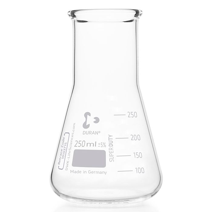 Thanks to their exceptional properties, such as excellent chemical resistance, nearly inert behaviour and high usage temperature, the original DURAN® Erlenmeyer flasks are ideal for use in laboratories. Moreover, the uniform wall thickness, minimal thermal expansion and the resultant high thermal shock resistance are outstanding characteristics. Therefore, DURAN® Erlenmeyer flasks are particularly suited to use with very high temperatures and fast temperature changes.