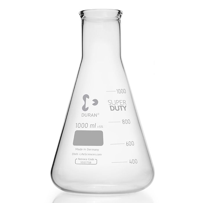 Thanks to their exceptional properties, such as excellent chemical resistance, nearly inert behaviour and high usage temperature, the original DURAN® Erlenmeyer flasks are ideal for use in laboratories. Moreover, the uniform wall thickness, minimal thermal expansion and the resultant high thermal shock resistance are outstanding characteristics. Therefore, DURAN® Erlenmeyer flasks are particularly suited to use with very high temperatures and fast temperature changes.