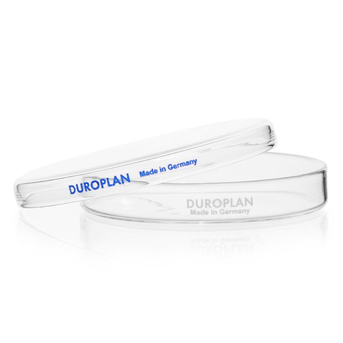 Cultivation of microorganisms can take place on a gel-like nutrient medium, which is placed in a flat, round, transparent dish with lid (the so-called Petri dish). Due to the solid gel, mixing of the microorganisms is prevented and larger cell culture accumulations (colonies) can grow. DURANĀ® Petri dishes are manufactured from borosilicate glass 3.3 using a special manufacturing process. They allow an even distribution of the culture medium and guarantee a distortion-free view. The lids of the DURANĀ® Petri dishes rest directly on the lower part and thus prevent turbulence of the protruding air space. This is well suited for reactions with long incubation times, at high temperatures or with sensitive culture media.